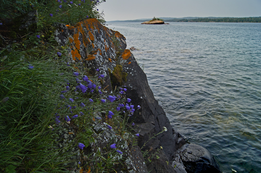 In July last year, I stopped along Rock Harbor and hopped out of my canoe at the bottom of a short cliff. A clutch of harebells was growing on a narrow ledge near my landing spot. Finding a spot to land the canoe in places like this can lead to a soaker or two if you don't have the proper water shoes. On this day, I just plunged my boots into the knee-deep water near shore. Welcome
